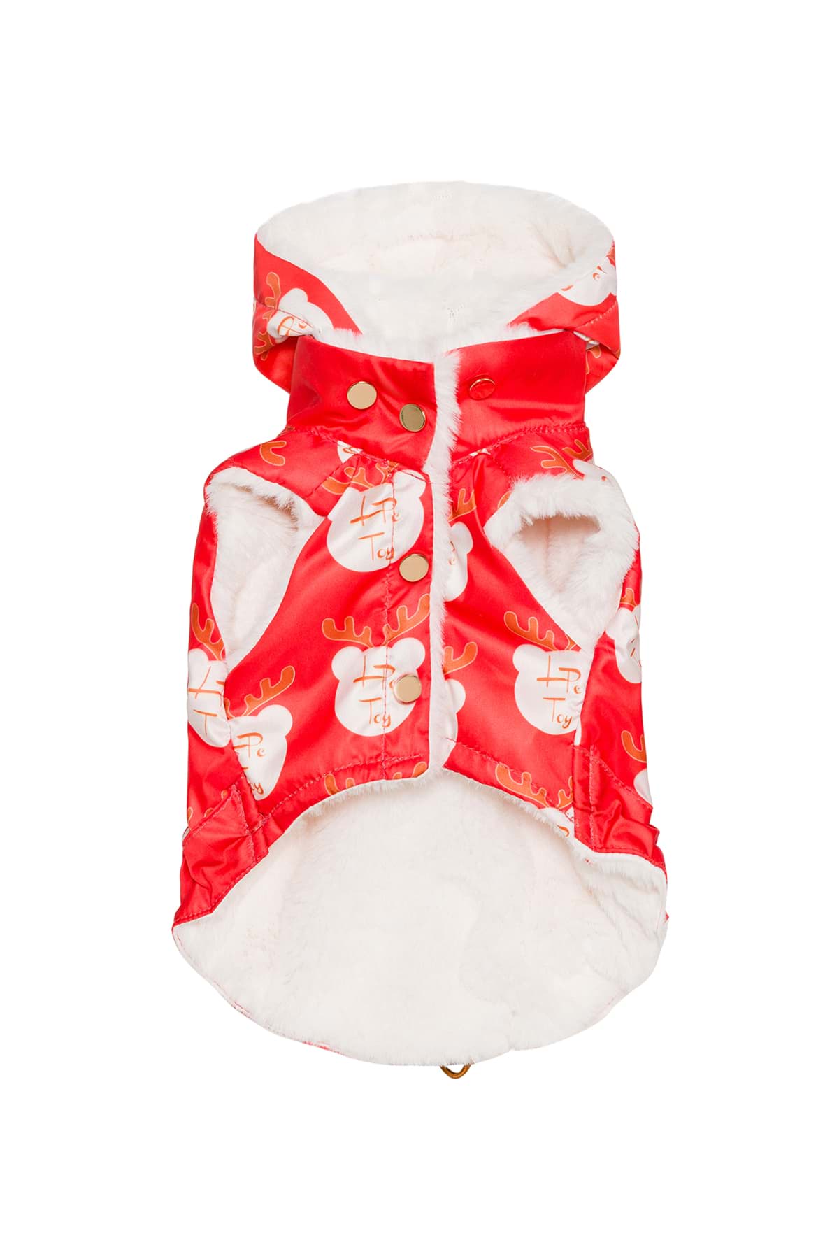 Çıkarılabilir kapşonlu peluş astarlı köpek yağmurluk.